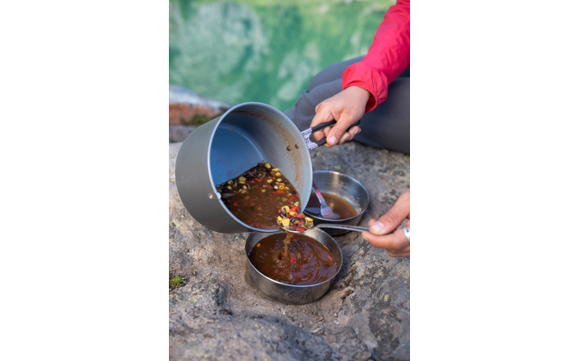 Diese robuste Gabel aus Edelstahl hat ein integriertes Düsen- und Kabelwerkzeug zur Wartung von MSR-Flüssigbrennstoffkochern unterwegs.
