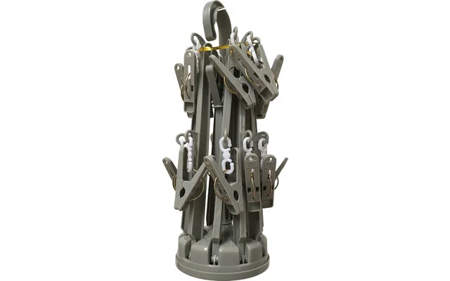 10-armige Miniwäschespinne. Stabile Aufhängung mit 20 Klammern. Vielseitig verwendbar, sehr platzsparend und wind-unempfindlich.