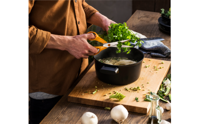 Multifunktional in ikonischem Design. Der Alleskönner unter den Classic-Scheren von Fiskars ist die 21 cm lange und 83 g schwere Universalschere. Ihre langen, kräftigen Klingen laufen vergleichsweise spitz zu und eignen sich für fast jede Schneidarbeit im Haushalt, in der Schule und im Büro. Der rostfreie Stahl der Härte HRC 57 gleitet sicher und präzise durch zahlreiche Materialien, von Papier über Pappen und Stoffe bis hin zu Folien und sperrigen Verpackungen.