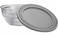 Praktisches Schüsselset mit luftdichten Deckeln. Schüssel und Deckel sind ineinander stapelbar.