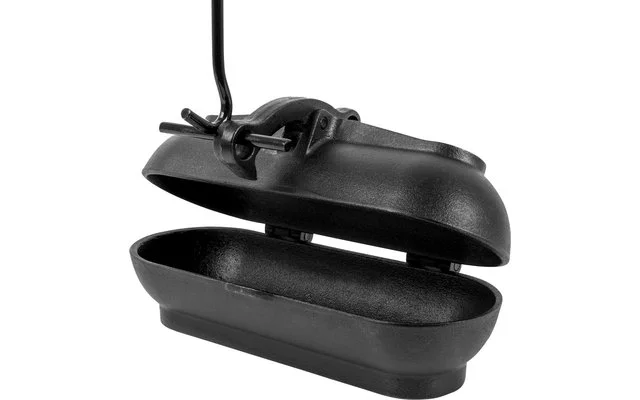 Der gusseiserne Kartoffelbräter sticht durch einen cleveren Mechanismus hervor: Der eigens konstruierte Kippriegel verschließt beide Hälften der Form fest miteinander, sobald du sie mit einem Deckelheber anhebst. So kannst du dein heißes Eisen gefahrlos aus dem Feuer nehmen oder versetzen. Hakst du deinen Deckelheber am unteren Ende des Kippriegels ein, so öffnest du den Bräterdeckel ganz einfach und kannst die dampfenden Kartoffeln servieren.