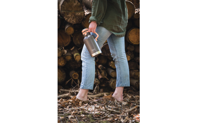 Doppelwandige Edelstahl Thermoskanne mit großer Einfüllöffnung und robustem Kunststoff Handgriff.